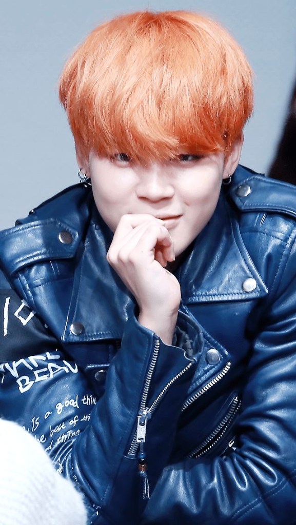 Lazy Unnie: Jimin has had many colors, from pink to black. However, maybe it’s because he’s an October baby, but the orange surprisingly fits. And when it’s styled back, umph.