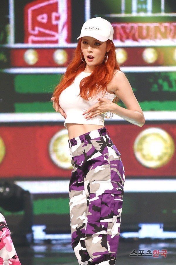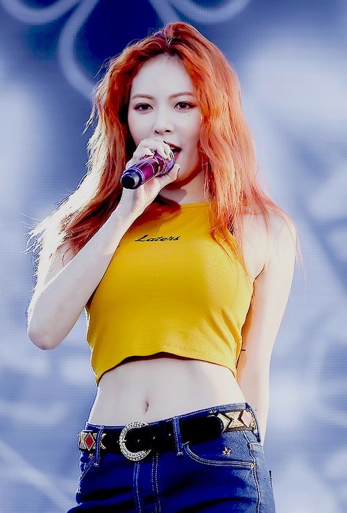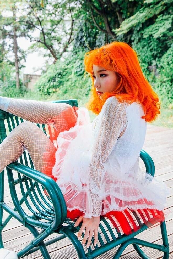 Sugar Baby Unnie: In all genuine honesty, I really liked this color on her. I thought it was quite complimentary and I think Hyuna can pull off a lot of colors. I think her problem lies in her choice of makeup cause she has some where she is quite literally looking like a clown.