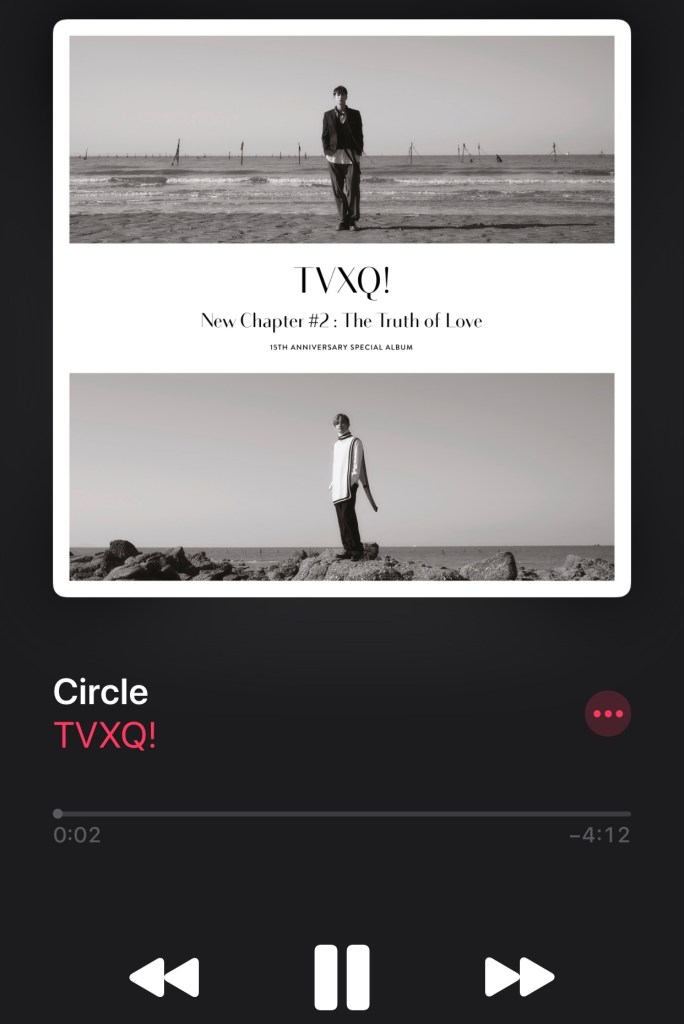- Circle by TVXQ – Something about this song is just so pleasant. I don’t know if it’s the combination of Yunho and Changmin’s voices or the ballad anthem vibe the music has. I just feel like there should be a choir behind them singing along.