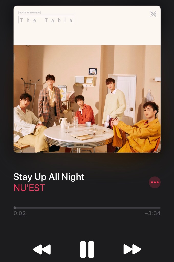 - Stay Up All Night by NU’EST– This is no BET BET but still a nice song. Not that memorable but when it comes up on the shuffle I don’t skip it. I really am enjoying this newish sound from NU’EST. Post-Produce and Wanna One, they’ve come back stronger and I love it.