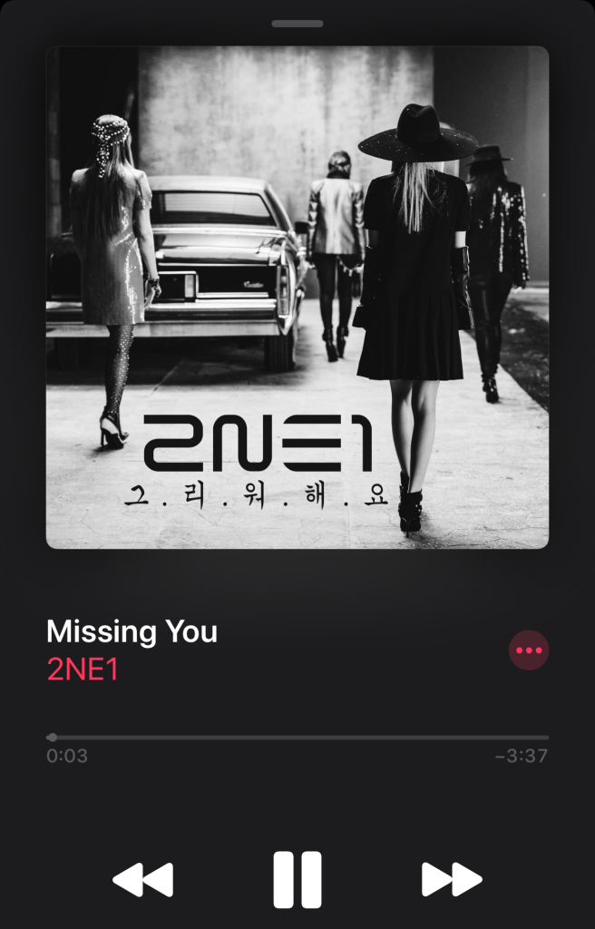 - Missing You by 2NE1 – I love this song. It’s one of my favorite girl group ballads. You can kind of feel the end near in their voices but even at the time, people didn’t know the future. I miss 2NE1.